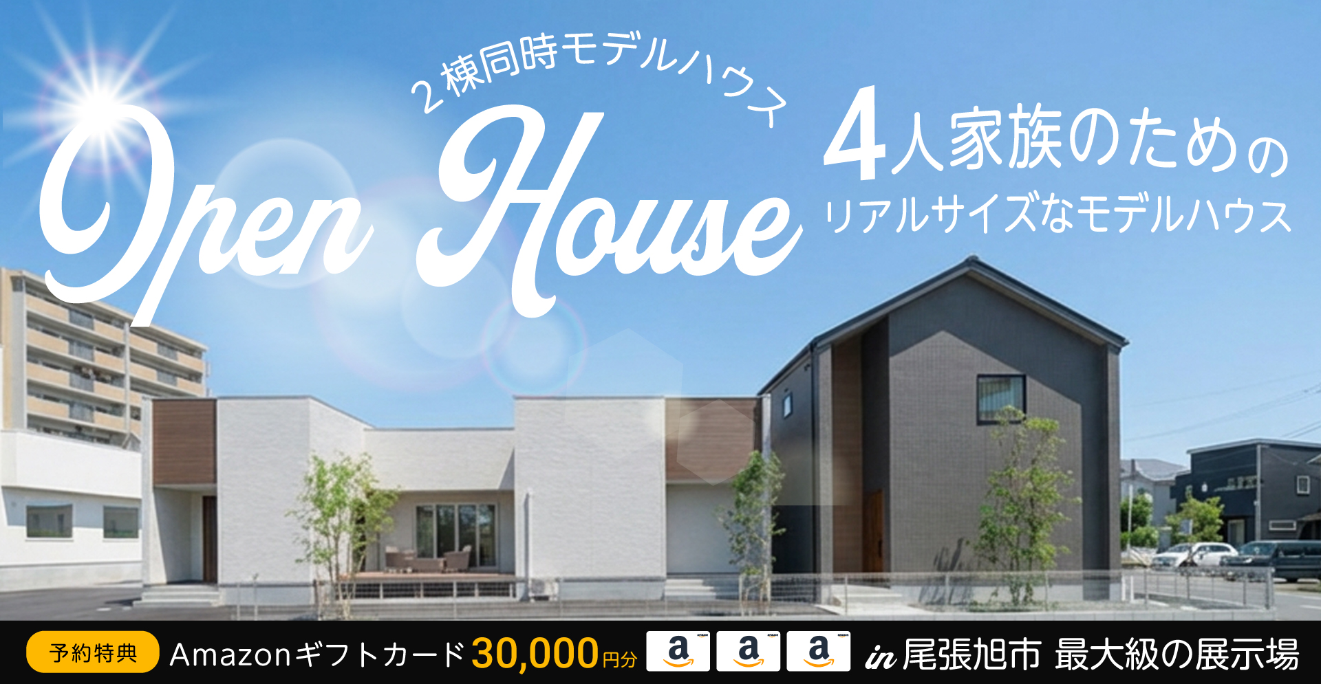 尾張旭市のモデルハウスでは、平屋と2階建ての2タイプを同時に見学可能。比較しながら「自分たちに合う暮らし」を具体的にイメージできます。