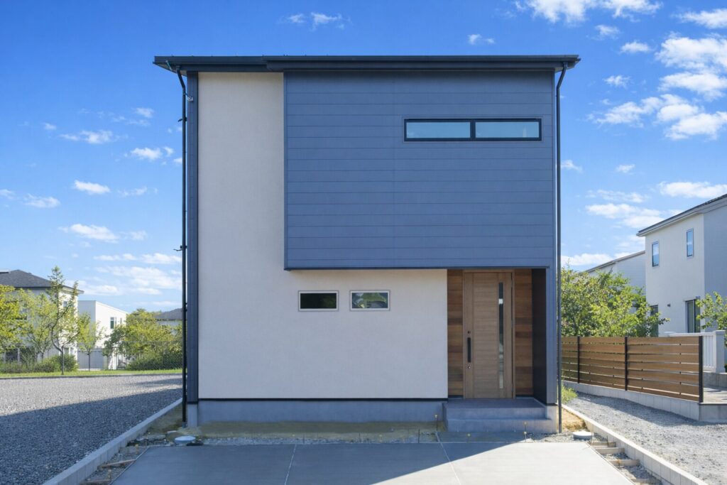 ネイビーとホワイトのツートンでまとめた、すっきりとした外観デザイン。